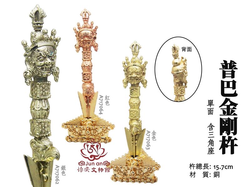 規格 普巴金剛杵(含座)銀色(銅本色)普巴金剛杵(含座)金色(銅本色)普巴金剛杵(含座)紅色(銅本色)
